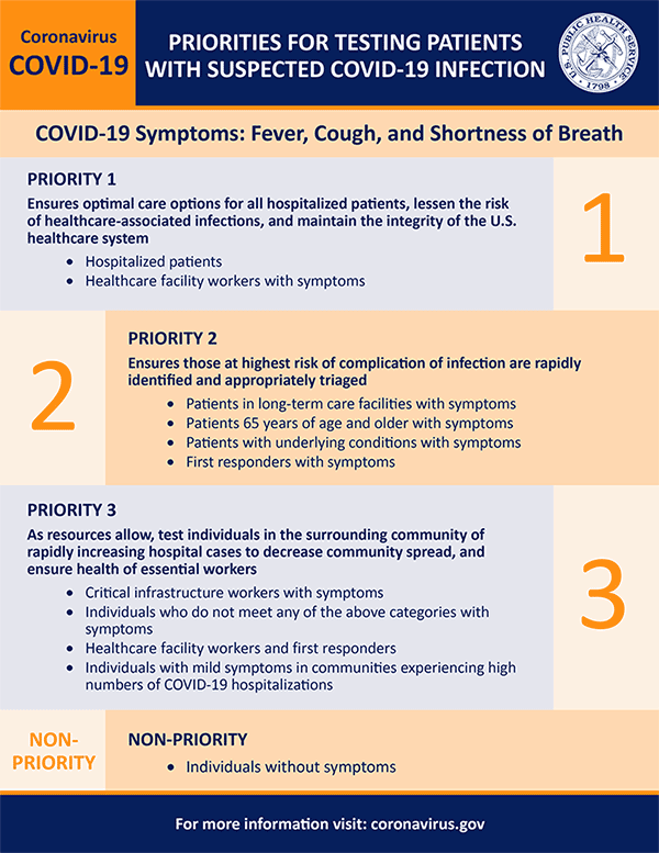 질병통제예방센터(CDC)가 정한 기준을 충족하는 개인은 무료로 검사를 받을 수 있다. 환자들은 검사예약을 위해 사전 등록이 필요하다.