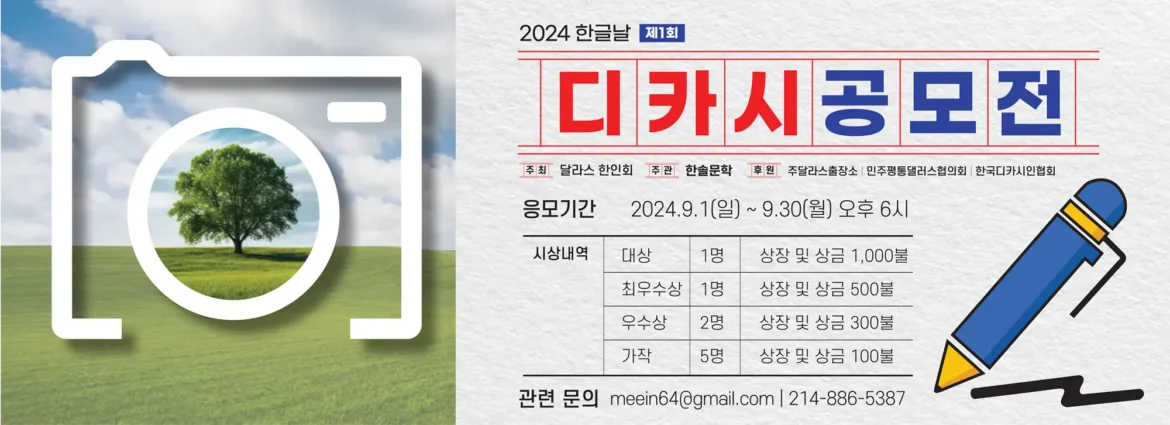 [AD] 달라스 디카시 공모전 by admin 2024-08-22 2024-08-22 714 You Might Be Interested In 전영주를 텍사스주의회로! “유권자 등록합시다” 2024-09-17 “힘내라 한인경제”…무기는 ‘e-기프트 카드’ 2024-05-08 캐롤튼 코리아 타운 지정 및 조성사업 “정상궤도 찾았다” 2024-09-24 [제주항공 참사] 달라스 한인회 분향소 운영 2024-12-31 [화보] 2023 코리안 페스티벌 2023-10-09 제74주년 6.25한국전쟁 ‘달라스 기념식’ 개최 2024-06-28 달라스 디카시달라스 한인회디카시 공모전한글날 행사한솔문학 0 comments 0 FacebookTwitterPinterestEmail previous post 텍사스 일부 학군, 코로나로 ‘학교 폐쇄’ next post 북텍사스 ‘구리 절도’ 기승 관련기사 [AD] 드레곤 보트 페스티벌 2025-10-28 [공고] 북텍사스한국여성회 제17대 회장 선거 2025-10-15 [AD]달라스한인회 제40대 회장 선거공고 2025-09-25 [AD]달라스노인회 선거 공고 2025-09-25 [AD] 2025 한가위 대축제 2025-08-21 [AD]달라스한인회 선관위 위촉 공고 2025-08-13 [AD] 제80주년 광복절 기념식 2025-07-31 [AD] 제80주년 광복절 기념식 2025-07-24 [광고] 북텍사스여성회 ‘회원 모집’ 2025-06-26 [AD] 달라스 미주체전 감사광고 2025-06-26 Leave a Comment Cancel ReplyYou must be logged in to post a comment.