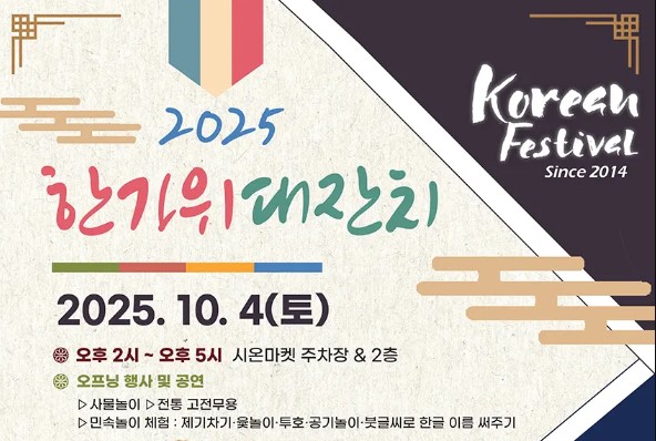10월 4일(토) 오후 2시부터 5시까지 시온마켓 주차장과 2층에서 ‘2025 한가위 대잔치’가 열린다.