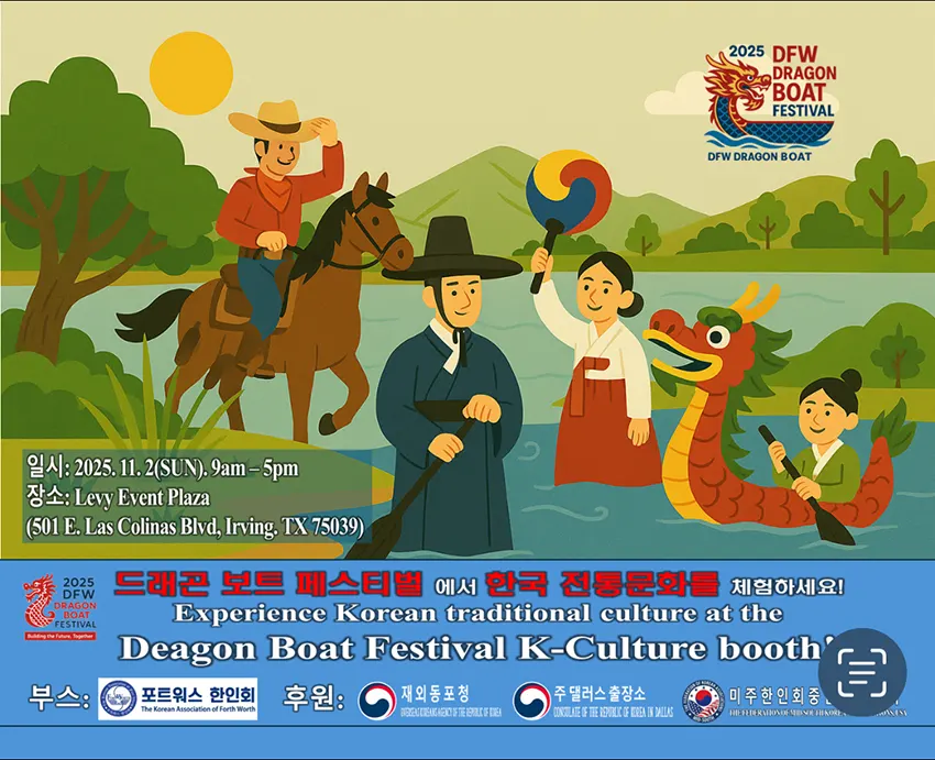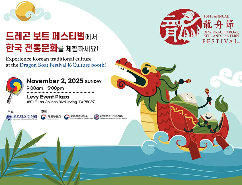 [AD] 드레곤 보트 페스티벌 by admin 2025-10-28 2025-10-28 32 You Might Be Interested In 포트워스 한인회, ‘김치’로 이웃사랑 실천 2023-11-20 [AD] 포트워스 ‘드레곤 보트 페스티벌’ 2023-09-13 [AD] 포트워스 한미 문화의 밤 2023-12-04 제26대 포트워스 한인회, 역대 최고 잔액 ‘이월’ 2025-02-03 [포트워스한인회] 후원과 성원에 감사합니다 2025-01-09 미주총연 서정일 총회장, 달라스 동포 간담회 개최 2024-12-06 Dragon Boat Festival드레곤 보트 페스티벌포트워스 한인회 0 comments 0 FacebookTwitterPinterestEmail previous post 제27대 달라스 한국노인회장 ‘이명재 후보’ 당선 관련기사 [공고] 북텍사스한국여성회 제17대 회장 선거 2025-10-15 [AD]달라스한인회 제40대 회장 선거공고 2025-09-25 [AD]달라스노인회 선거 공고 2025-09-25 [AD] 2025 한가위 대축제 2025-08-21 [AD]달라스한인회 선관위 위촉 공고 2025-08-13 [AD] 제80주년 광복절 기념식 2025-07-31 [AD] 제80주년 광복절 기념식 2025-07-24 [광고] 북텍사스여성회 ‘회원 모집’ 2025-06-26 [AD] 달라스 미주체전 감사광고 2025-06-26 [AD]북텍사스 경찰국 자녀 장학행사 2025-06-06 Leave a Comment Cancel ReplyYou must be logged in to post a comment.