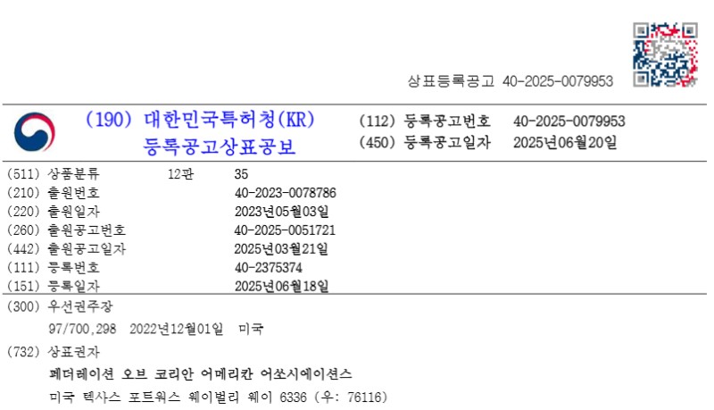 이들은 2023년 5월 3일 ‘미주한인회총연합회’ 명칭을 한국 특허청에 출원해 2025년 6월 20일 등록을 완료했다.