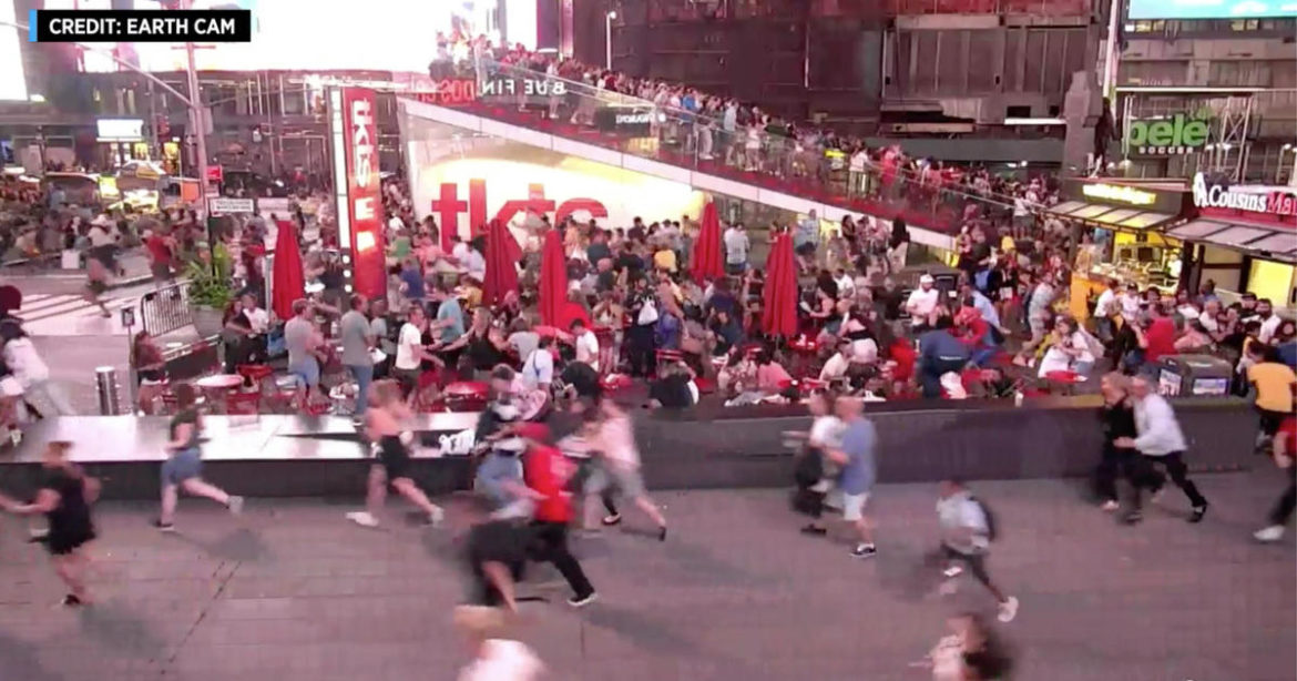 잇따른 총기참사로 충격에 빠진 가운데 뉴욕 맨해튼의 명소인 타임스스퀘어에서 오토바이 굉음을 총성으로 착각하면서 대소동이 벌어졌다.