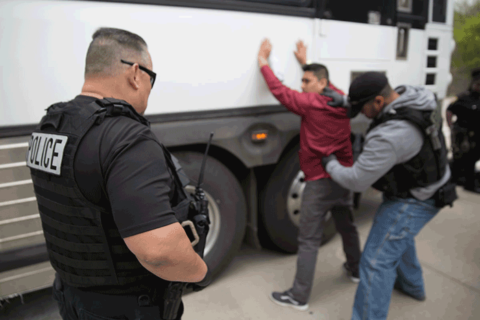 단속반은 CVE 테크놀로지 건물 뒷편에 4대의 대형버스를 대기시킨 후 건물 안으로 진입해 직원들의 체류신분을 확인, 합법적으로 고용된 직원에게는 초록색 밴드를, 체류신분을 증명하지 못하거나 불법체류가 의심된 직원에게는 노란색 밴드를 채워 체포 대상자를 구별했다.